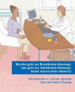 Zwei Broschüren der Bundesvereinigung Lebenshilfe und der Deutschen Krebsgesellschaft sollen ihnen den Zugang zu Krebsfrüherkennung und Therapien erleichtern. Sie stammen von der französischen Organisation ONCODÉFI und wurden ins Deutsche übersetzt. An ihrer Entwicklung und Gestaltung haben Menschen mit geistigen Beeinträchtigungen mitgewirkt.